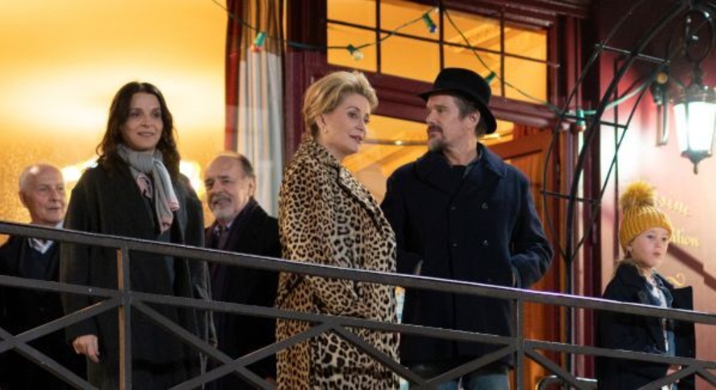 The publication of her mother Fabienne’s gossipy memoirs, brings estranged daughter Lumir (Juliette Binoche) and husband (Ethan Hawke), back to Paris to join the celebration. But the family reunion swiftly becomes confrontational. Old grudges surface, inappropriate love affairs and resentments are confessed. To make matters worse, iconic actress Fabienne (superbly-acted by Catherine Deneuve), is simultaneously filming a science-fiction movie playing the aging daughter of an eternally-young mother (could “reality meeting fiction” lead to a mother-daughter reconciliation?)